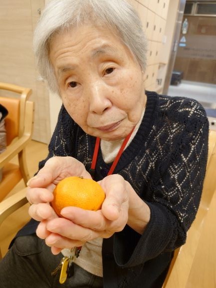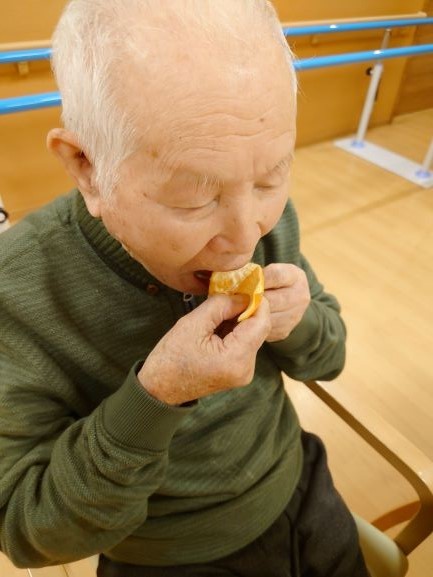 デイサービスでは、風邪予防でおやつにみかんを提供しています