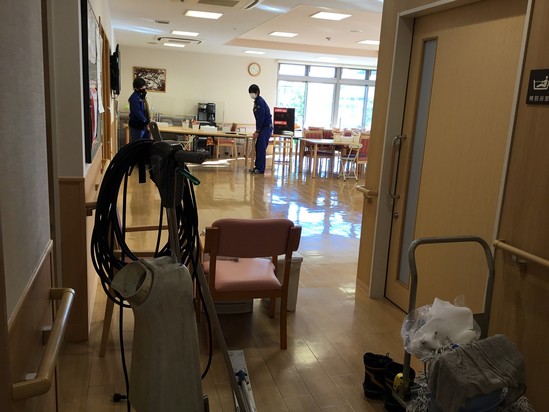 ワックス掛けが終わった食堂はピカピカです