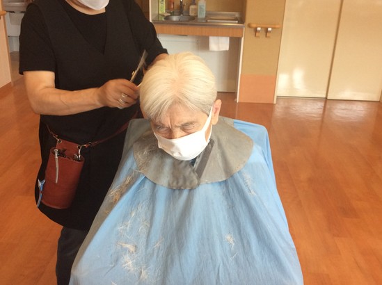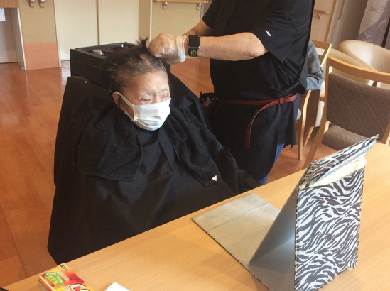 介護付きでは月に1回、訪問理美容サービスを利用しています。