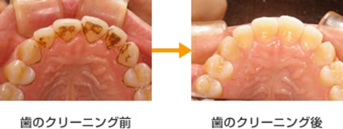 重炭酸ナトリウム塩を専用機械から吹き出して、歯の表面に付いたヤニ・茶渋・コーヒーなどの着色を