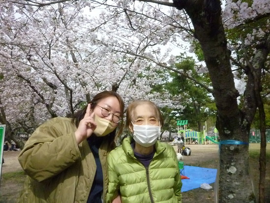 車の中から桜が見えてくると「わぁー綺麗じゃなー」「満開じゃわ」と喜ばれ、皆様の笑顔も満開!!